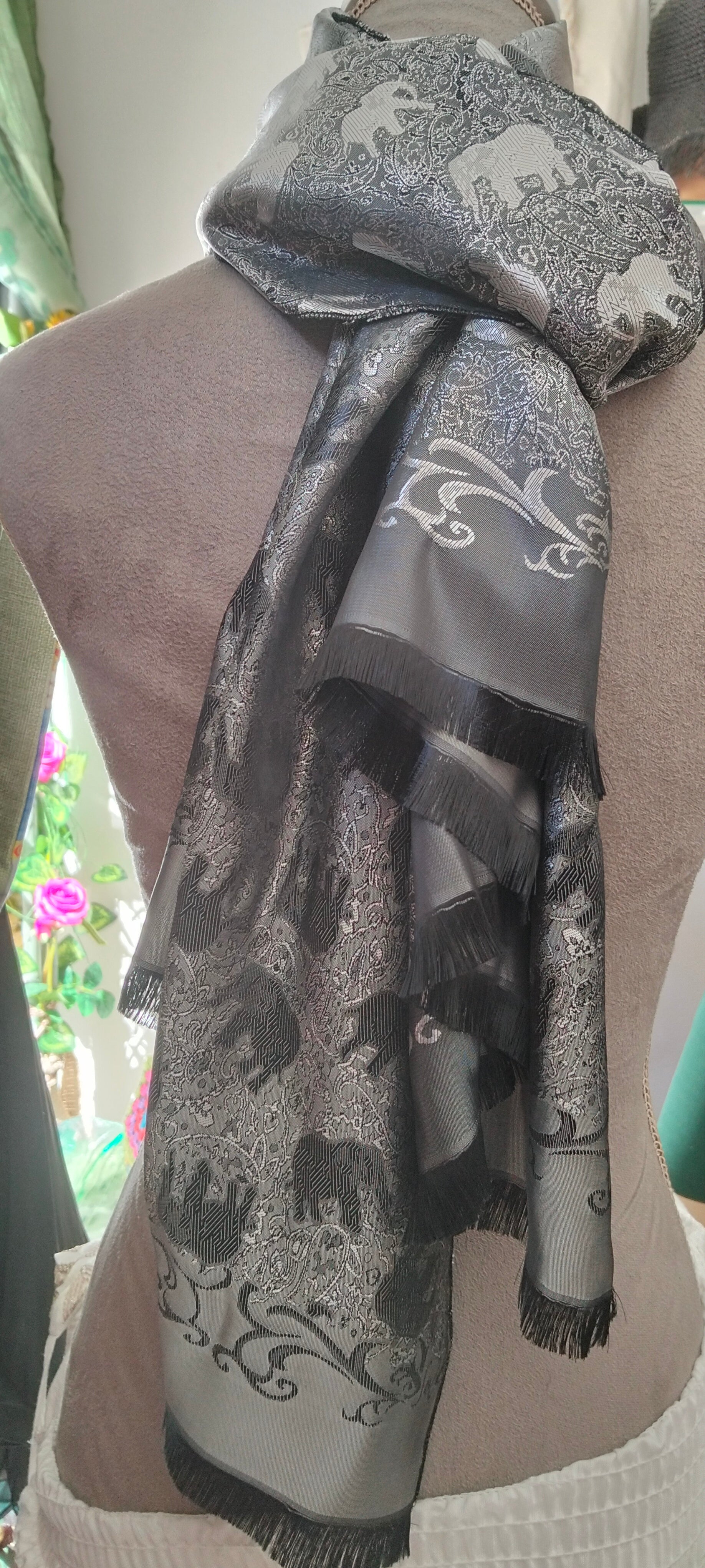SCIARPA DI SETA THAILANDESE,SCIALLE CON MOTIVO ELEFANTE BOHO TURBANTE .
